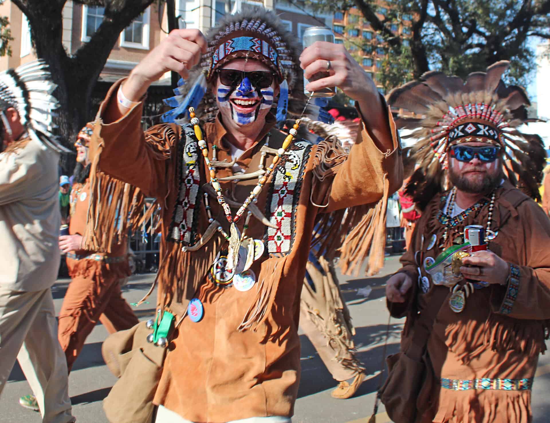 Since 1967, the Sunday before Fat Tuesday has been celebrated as Joe Cain Day in Mobile, Alabama, in honor of the man credited with reviving Mardi Gras in 1868. Local historian Julian Lee “Judy” Rayford started the tradition, even reintering Joe Cain and his wife in downtown Mobile. Dressed as Cain’s character, Chief Slacabamarinico, Rayford led the first parade, later passing the role to others, including Wayne Dean Sr., who has portrayed Chief Slac for over 30 years.