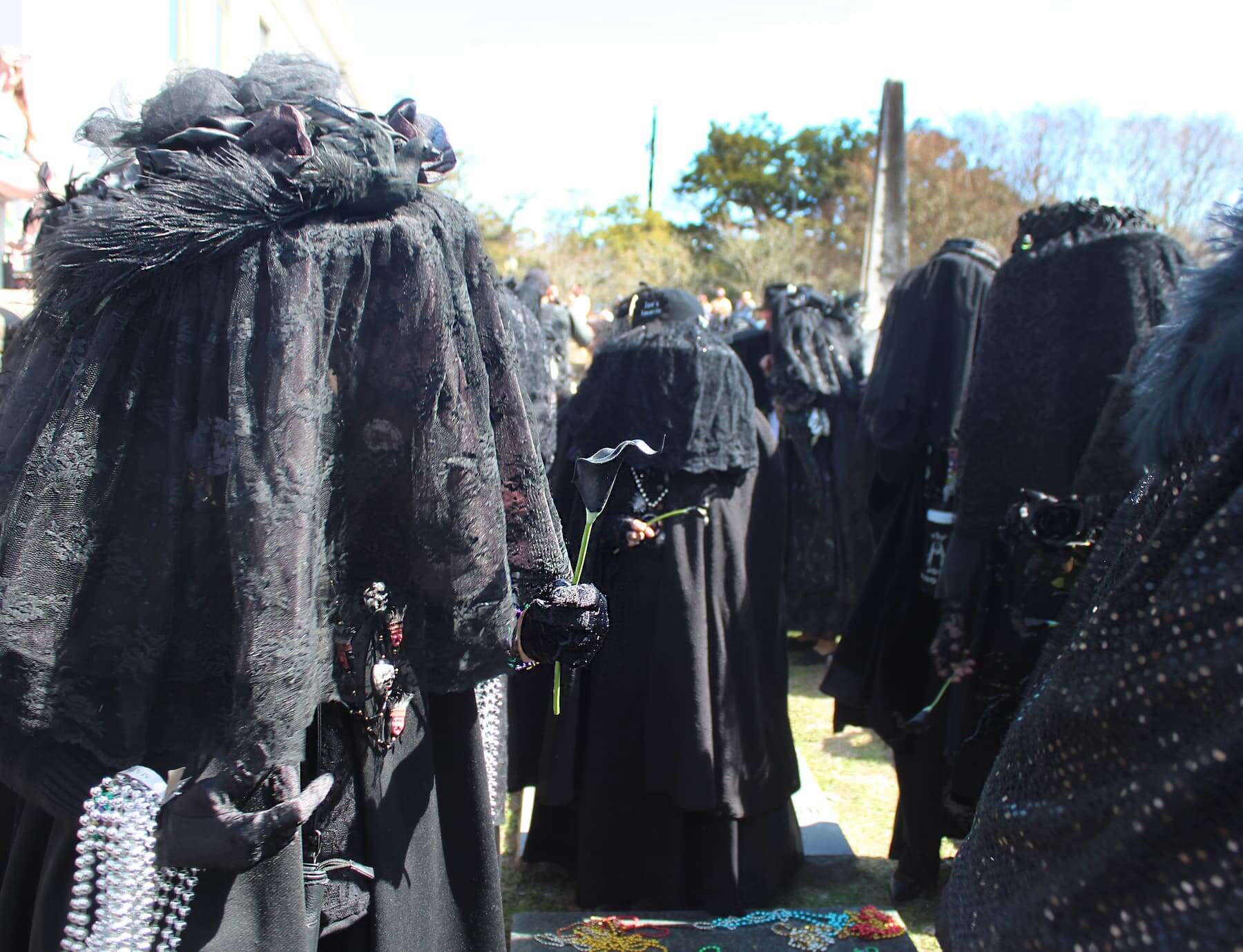 A major highlight is Cain’s Merry Widows, a mysterious, all-black-clad group of women who wail at Cain’s grave, toast him at his house, and ride in the parade. Their antics and coveted throws are crowd favorites. In contrast, the Mistresses of Joe Cain, dressed in red, celebrate Joe’s life with flair, claiming he loved them best. The two groups often stage mock catfights before the parade.