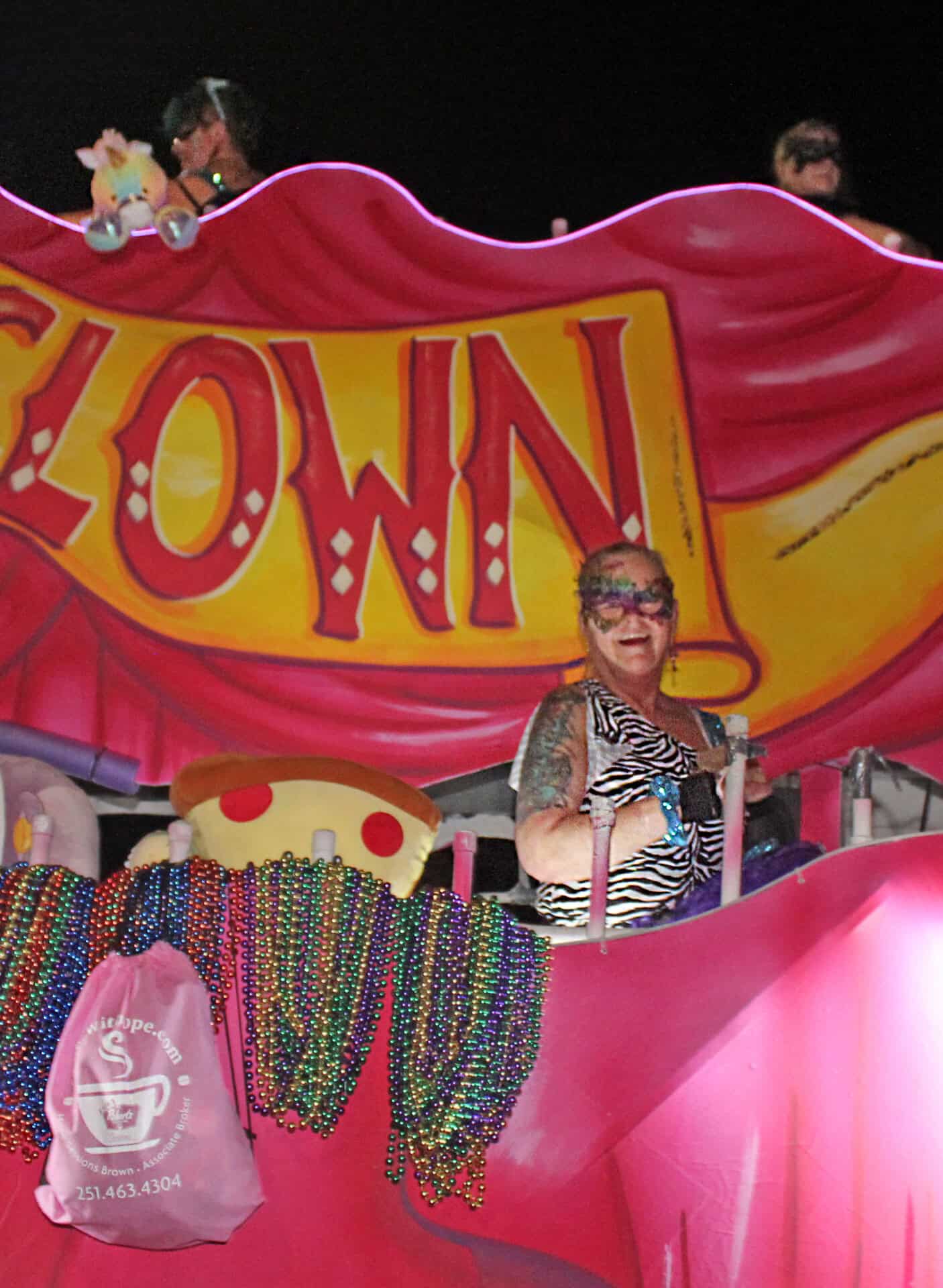 In 2026, which is their fifth annual parade and ball, the theme is “Goddess of the Gulf.” Queen Amy and Emblem Josie are sisters. The parade includes six floats, one being the emblem float, rented from the Conde Cavaliers. Costumes are by seamstress Carra Deck.